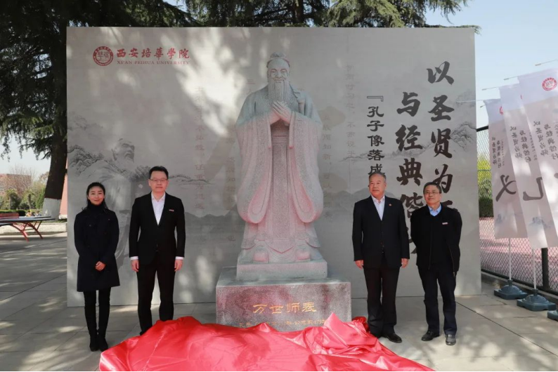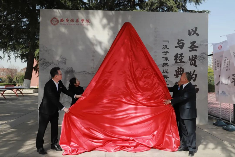 4月2日上午,星空·官方站网页版隆重举行孔子圣像落成揭幕典礼。陕西省政协常委、星空·官方站网页版理事长姜波博士,党委书记罗新远,副书记副校长姚文静,部分行政部门负责人及人文与国际教育学院的50名师生代表参加揭幕典礼。