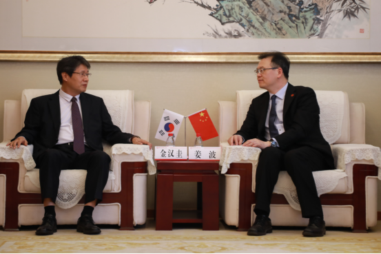 4月27日上午,韩国驻西安总领事馆金汉圭总领事、大韩民国驻西安总领事馆魏秀姬领事等一行4位莅临我校交流访问。我校理事长姜波、副校长刘越莲、国际交流中心主任王鹏、建筑与艺术设计学院常务副院长徐莹、韩国籍教授崔圣伯陪同参观并座谈。