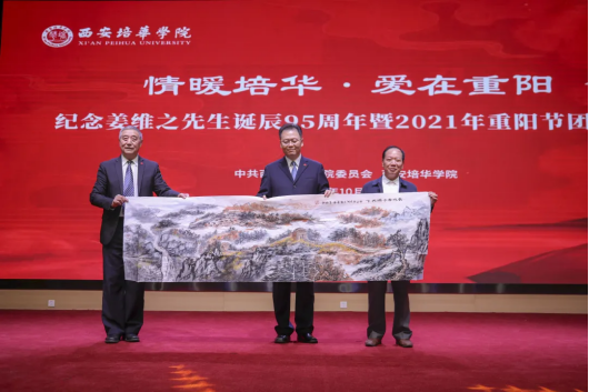 陕西省第十届人大常委会副主任邓理同志在贺信中指出,姜维之先生不仅是新中国民办高等教育事业的开拓者,更是具有远见卓识的教育家。他艰苦创业、勇往直前的精神,实事求是、勇于探索的科学风范,以人为本、以德为先的教育理念,以及尊师重教的亲和力,是今天我们开拓未来、推动高水平民办大学建设的宝贵精神财富。