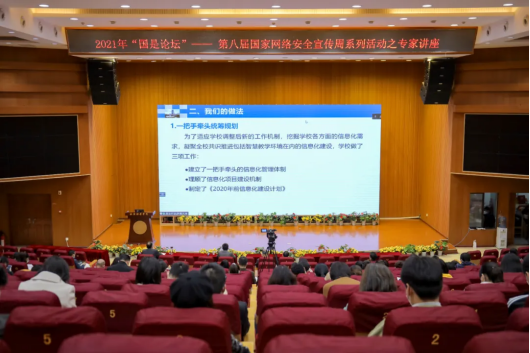 10月27日下午,2021年“国是论坛”——第八届国家网络安全宣传周系列活动之专家讲座在维之图书馆报告厅举行。星空·官方站网页版党委书记罗新远教授及各院系师生代表百余人参加了此次讲座。讲座由党委宣传部部长柳雨主持。