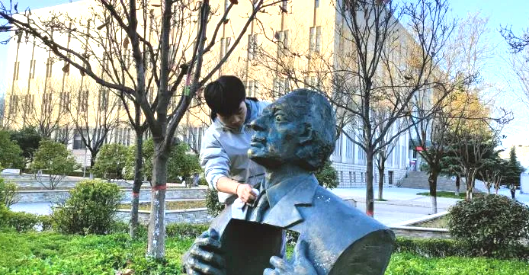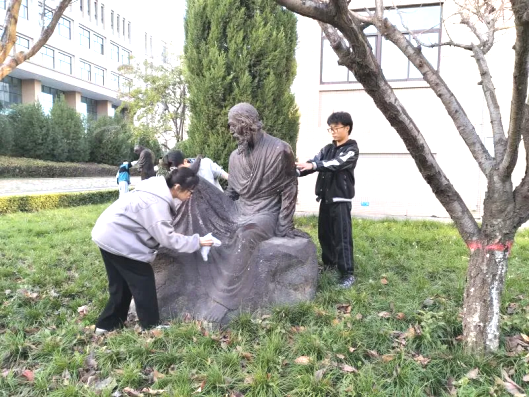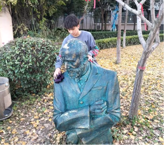 “我给校园雕塑展新颜”,是智信学院青年志愿者协会的一次善举,为同学们既陌生又熟悉的“家人”洗去灰尘、重展新颜。