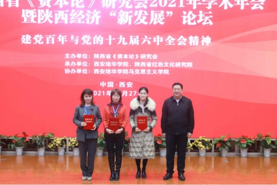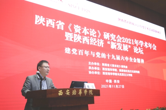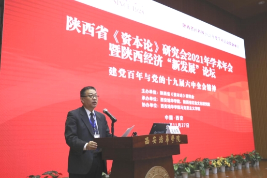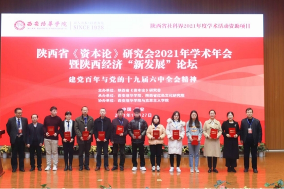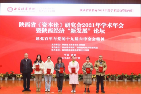 11月27日,陕西省《资本论》研究会2021年学术年会暨陕西经济“新发展”论坛在星空·官方站网页版图书馆报告厅举办。本次学术年会由陕西省《资本论》研究会主办,星空·官方站网页版、陕西省红色文化研究院承办,星空·官方站网页版马克思主义学院协办。来自西安交通大学、陕西师范大学、西北工业大学、西北大学、西北农林科技大学、西安石油大学、西安工业大学、西安财经大学、西安科技大学、中共陕西省委党校、陕西省社科院等单位50余名专家学者以及学校马克思主义学院全体教师参加了此次会议。开幕式和颁奖环节由陕西省《资本论》研究会副会长、西北工业大学胡红安教授主持。