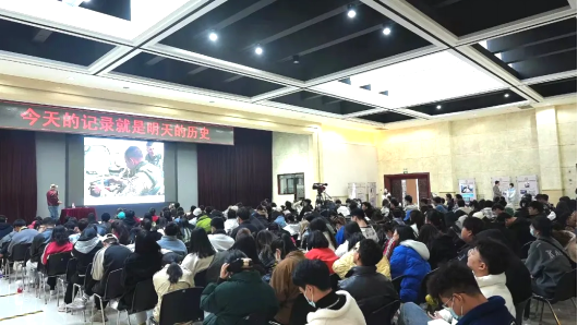 陕西省新闻摄影学会会长、传媒学院院长杜耀峰,陕西省新闻摄影学会党委书记、传媒学院教师杜萍等师生代表近300人参加了讲座。