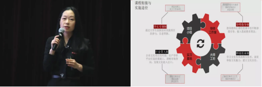 人文与国际教育学院外语系主任胡小花以《春风化雨,润物无声——<阅读与思辨·文学>的课程思政内容设计与实施》为题对省级一流课程思政教学改革进行了分享。她通过案例导入、体验演练、对比研究、讨论练习、体悟反思等形式,将英语专业技能教学和家国概念、身份认同、国际视野等思政元素结合,表示课程思政要注意自然融合、以柔克刚、顺势而为、寓知于行、牢记根本。