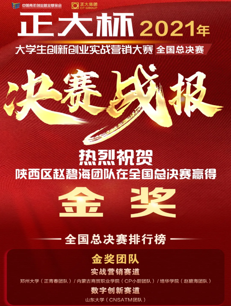 赵碧海本人表示,本次比赛离不开学校及正大集团陕西区团队的支持和帮助,离不开团队的日夜协作及密切配合,通过本次比赛,不仅了解了正大集团的文化及经营原则,获得了本次比赛的金奖,也收获了企业offer,实现了毕业后的理想目标。