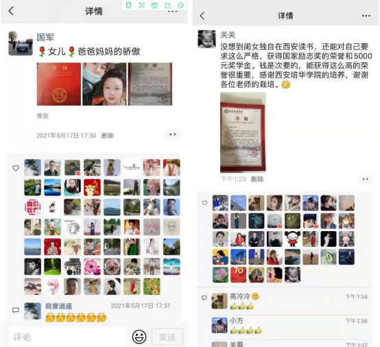 家长们通过晒照分享,鼓励学生在今后的学习和生活中积极进取,争取获得更多的荣誉