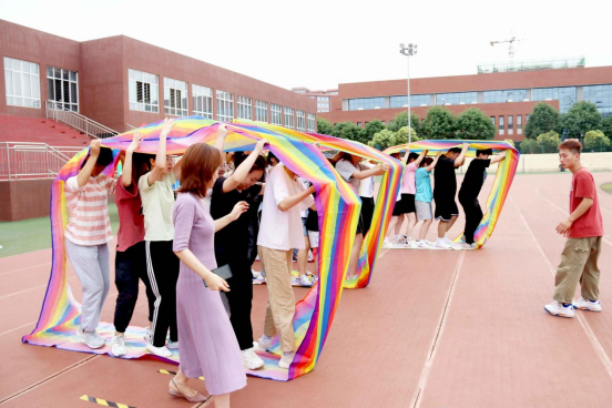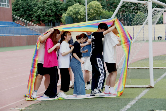 开幕式结束后,运动场上热情似海。师生们迈着青春的步伐,一道道耀眼的风景,在展示团队合作风采的同时,尽情享受着团体运动的快乐与激情,体会着欢乐抖一抖、超级一字马、威力龙卷风等每个运动项目带来的积极心理意义。