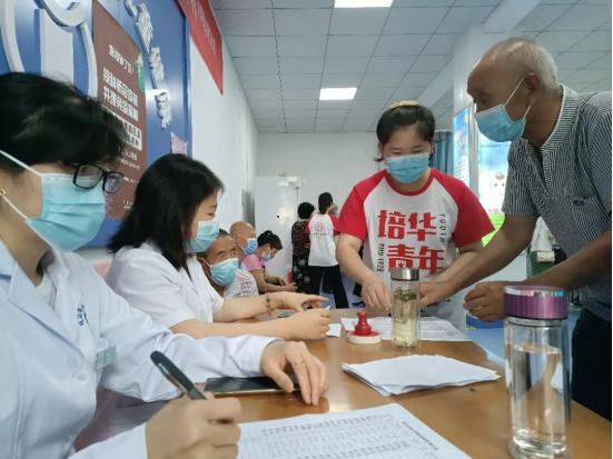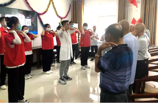 在走访凤鸣镇时,队员们为当地敬老院的老人们带去健康洗手操和中医养生拍拍操,老人们热情地参与到活动中,老人们一边练习健康操,一边学习常见慢性病的预防知识,整个现场都被欢声笑语填满;同时,队员们积极为老人们进行肩颈按摩、测量血压,并向他们普及健康用药知识。