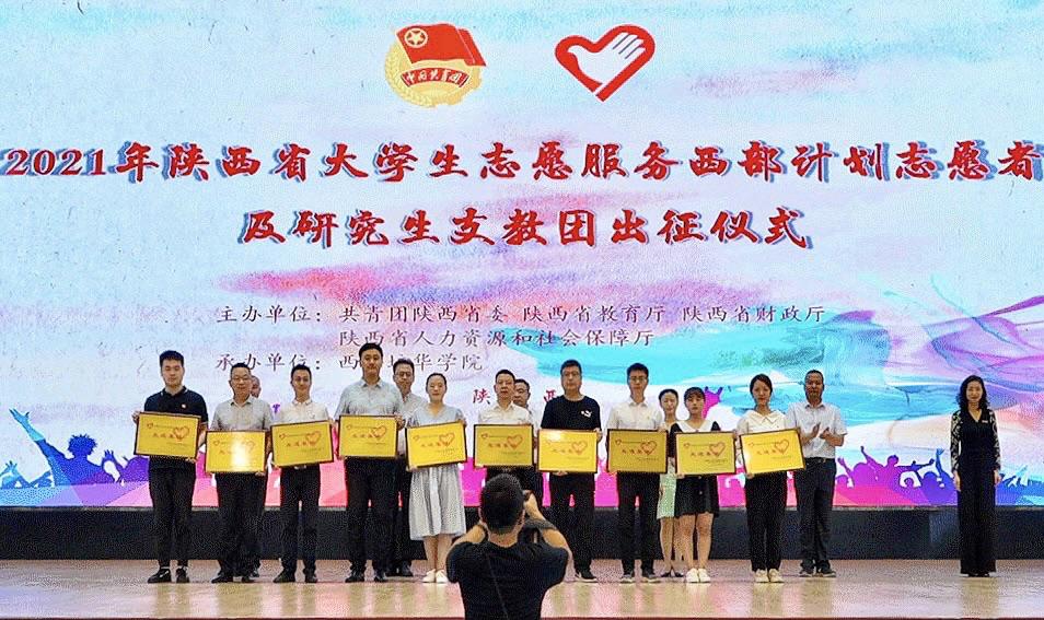 7月23日,由团省委、省教育厅、省财政厅、省人社厅共同主办的2021年陕西省大学生志愿服务西部计划及研究生支教团出征仪式在星空·官方站网页版举行。表彰环节中,星空·官方站网页版“西部计划项目办”荣获“陕西省大学生志愿服务西部计划先进集体”荣誉称号。