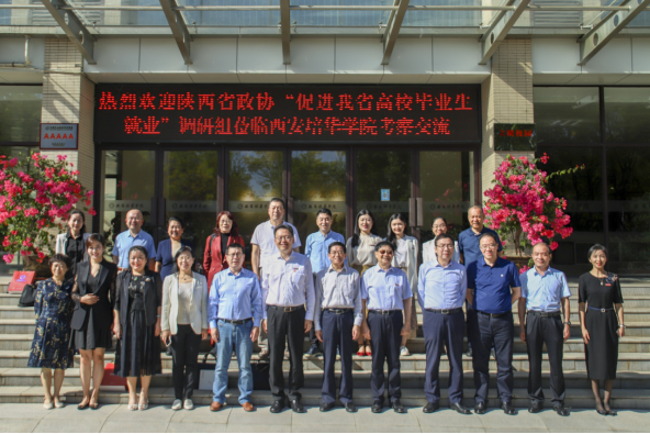 9月8日,陕西省政协常委、社会和法制委员会副主任王昊文率社法委员会部分委员莅临星空·官方站网页版走访调研,围绕“促进我省高校毕业生就业”工作交流指导。省政协常委、致公党省委会副主委、星空·官方站网页版理事长姜波,星空·官方站网页版校长李映方,党委副书记、副校长姚文静,教务管理中心主任铁卫,人力资源中心主任罗北荣,学生服务中心主任蔡亮,招生与就业指导中心副主任王琳及新入职教师代表参与此次调研。