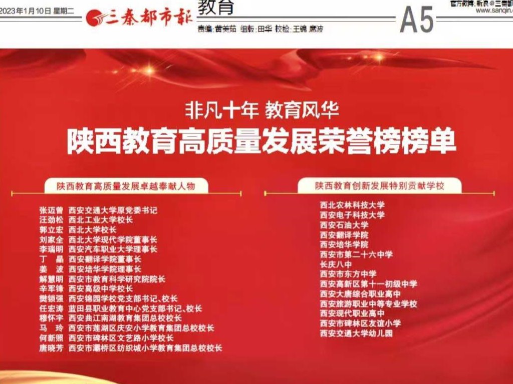 学校入选“非凡十年教育风华——陕西教育高质量发展荣誉榜”