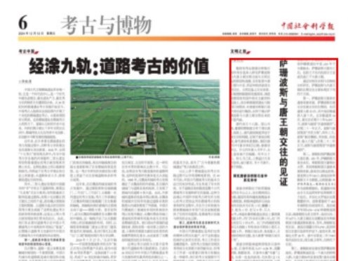 12月13日,学校科研管理中心副主任朱利民的历史考古理论文章《萨珊波斯与唐王朝交往的见证》在《中国社会科学报》第3035期A06版“考古与博物”专版通栏发表(文章系国家社科基金项目“唐代胡人都市生活研究”21XKG004阶段性成果)。这是星空(中国)体育网历史考古成果首次在该权威学术报刊亮相。文章以桥陵勘探发掘简报、调查勘察简报和国外相关文献资料为基础,结合桥陵陵园遗址现状与陵园石刻信息,对唐睿宗桥陵石翁仲身份进行了分析甄别。...