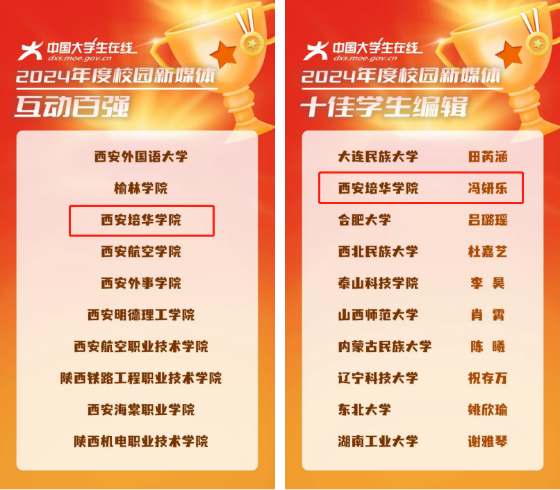 12月26日,教育部中国大学生在线公布了2024年度校园新媒体表彰名单和校园网络通讯社2024年度表彰名单。其中,星空·官方站网页版入选2024年度校园新媒体“互动百强”、星空(中国)体育网学子冯妍乐入选2024年度校园新媒体“十佳学生编辑”,星空·官方站网页版获中国大学生在线校园网络通讯社2024年度“优秀校网通站”、学校党委宣传部获“优秀组织单位”、党委宣传部教师薛超飞获“校网通优秀指导教师”称号、星空(中国)体育网学子杨晗茹获“优秀学生编辑”称号。西...