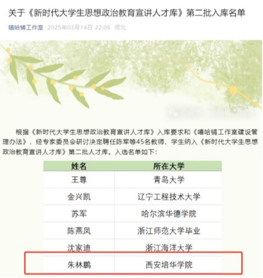 【师誉杏坛】辅导员朱林鹏成功入选新时代大学生思想政治教育宣讲人才库