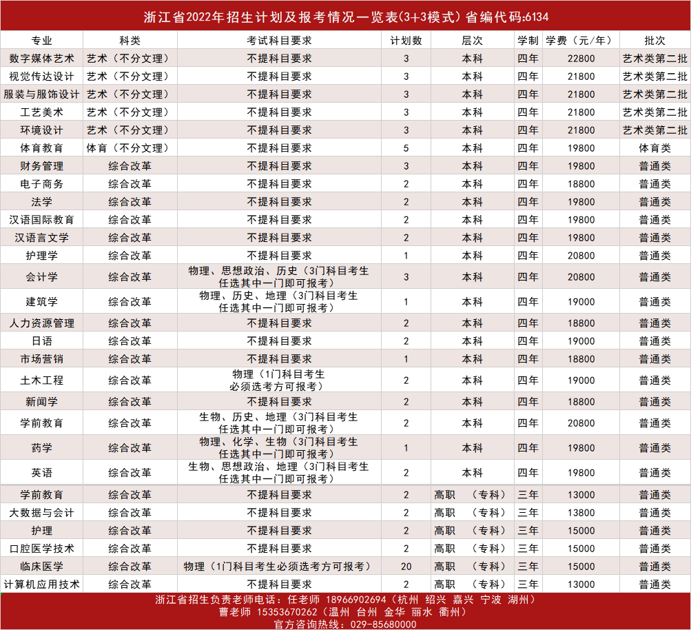 2022年浙江省招生计划及报考情况一览表