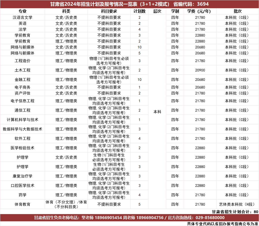 2024年甘肃省招生计划