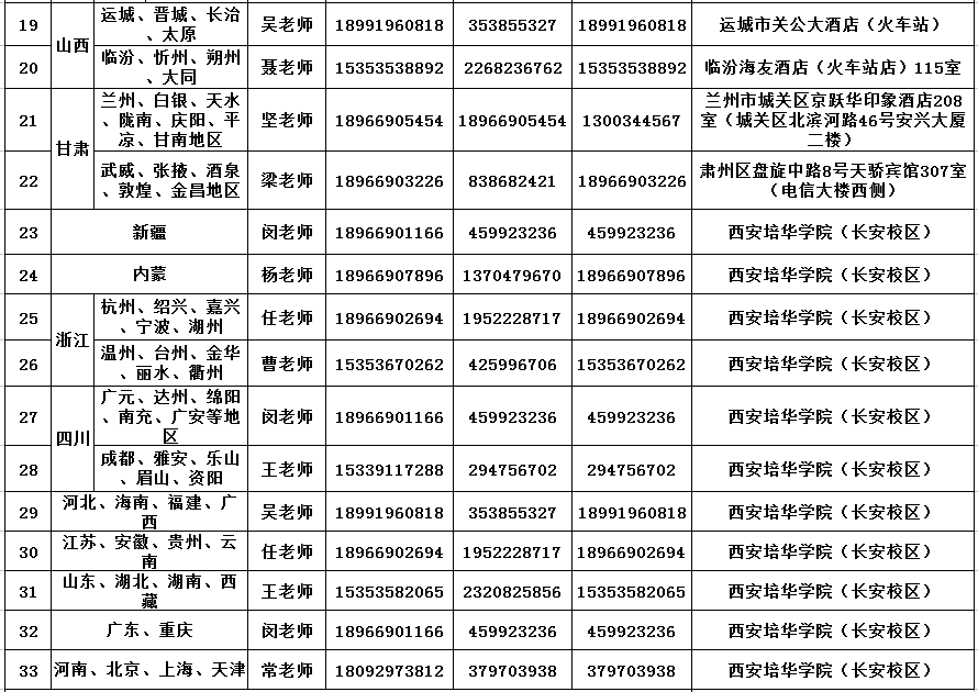 星空·官方站网页版2019年各地区招生驻点信息一览表