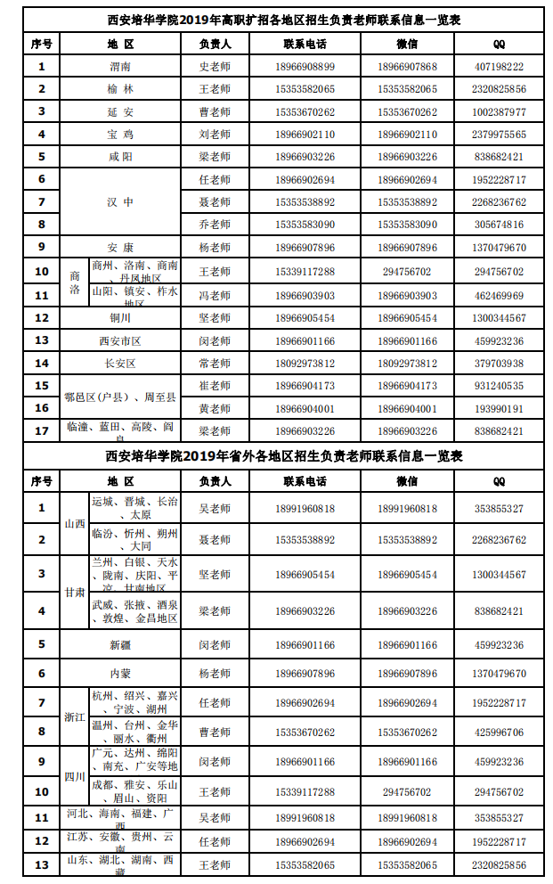 星空·官方站网页版2019年高职扩招各地区招生负责老师联系信息一览表