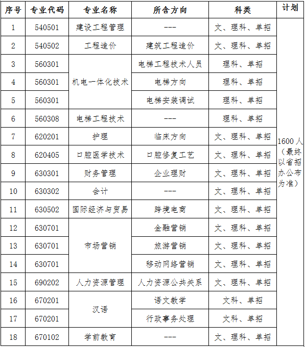 我校参与分类招生考试专业13个,部分专业含专业方向,故考生在网上申请时有18个(含部分专业专业方向)选项可选,具体专业设置情况如下表: