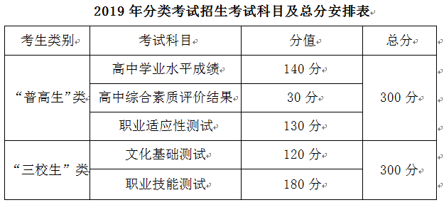综合评价招生测试形式及赋分办法:陕西省普通高等职业教育分类考试总分为300分。