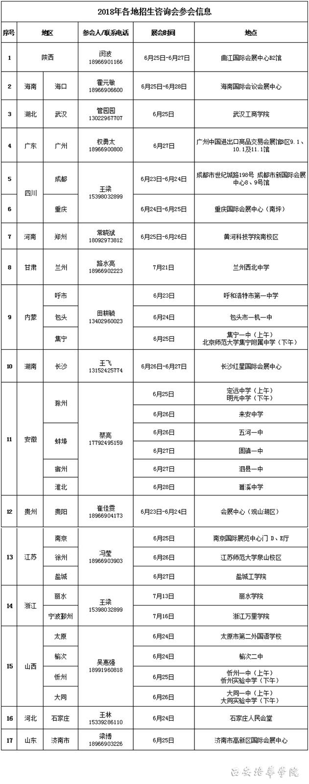 星空·官方站网页版2018年高招咨询会参会信息一览表