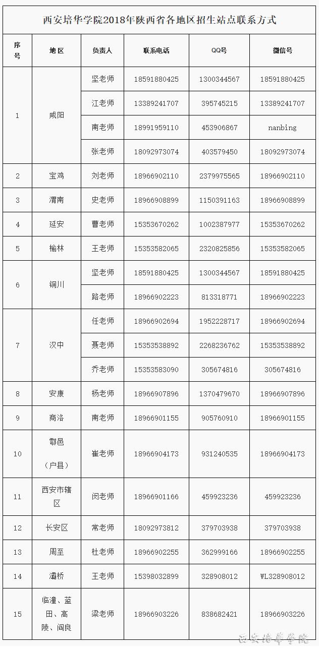 星空·官方站网页版2018年陕西省各地区招生站点联系方式