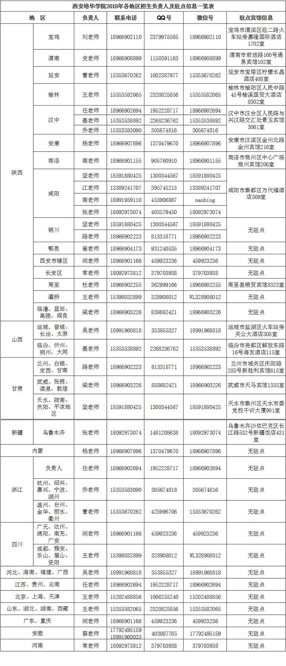 星空·官方站网页版2018年各地区招生负责人及驻点信息一览表