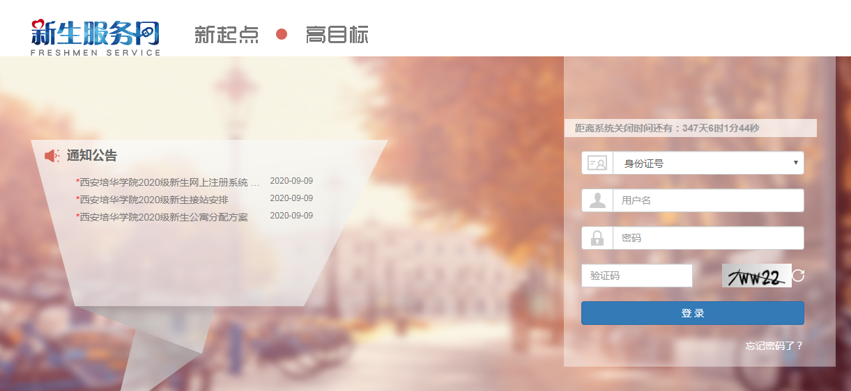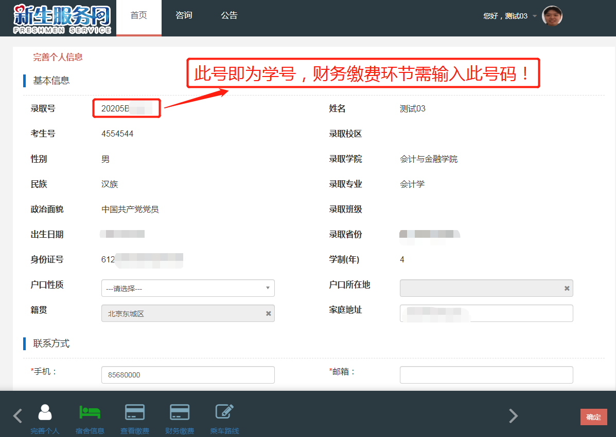 登录账号为本人身份证号,密码为身份证号后六位(注:密码最后一位为X的,必须以大写格式输入),进入网上注册报到系统(如下图);