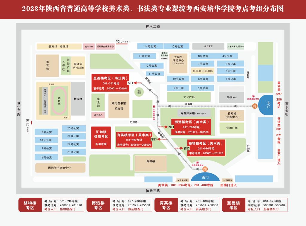 12月4日早6:00起,分学校东、南门两个入口进入考点。考试当天,考生应携带本人手机至少在考前1小时到达考点,并自备口罩做好个人防护工作,排队进入考点时要保持1米以上安全距离。考生须提前准备(1)二代身份证;(2)统考准考证;(3)健康码;(4)行程码;(5)考前24小时内核酸阴性证明;(6)《2023年陕西省艺术类专业课统考考生健康状况登记卡》《考生健康承诺书》。自觉接受体温检测,错峰错时进入考点。