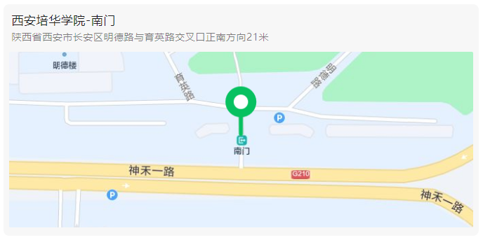 星空·官方站网页版(长安校区)位于西安市常宁大街888号。距地铁2号线韦曲南站3.5公里,交通便利,学校东门入口为长安路主干道,平日车辆较多,为避免拥堵耽误考试,建议考生乘坐公共交通(地铁2号线)抵达学校。考生可从韦曲南站B口出,乘坐323路、500路、324路、332路、335路、338路公交车,4站路即可到达学校东门。