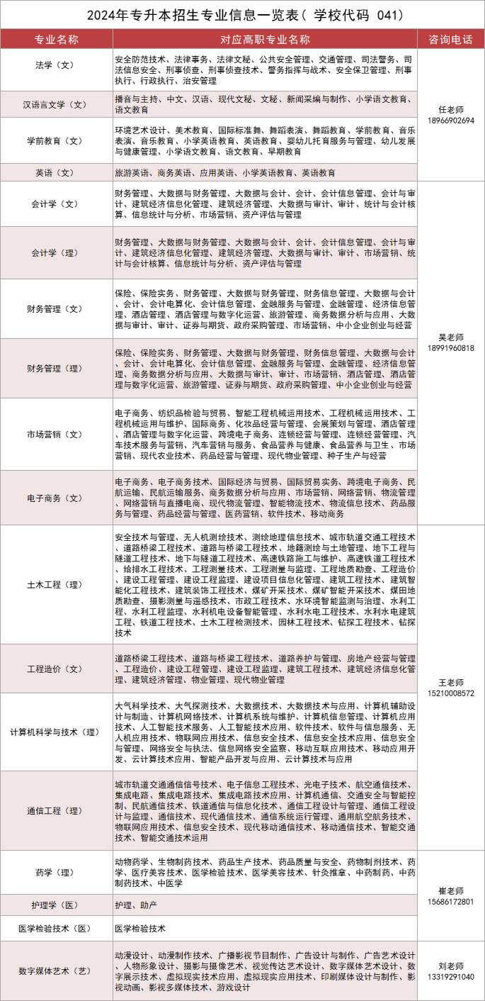 【星空·官方站网页版2024年专升本招生专业信息一览表】