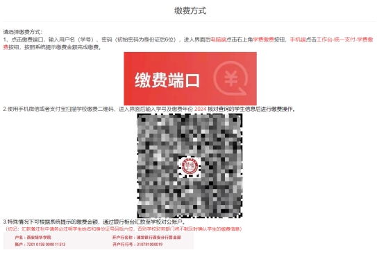 通过对公账户缴费的新生,可于3个工作日后登录“星空·官方站网页版新生网上注册系统”,查询自己的缴费情况;