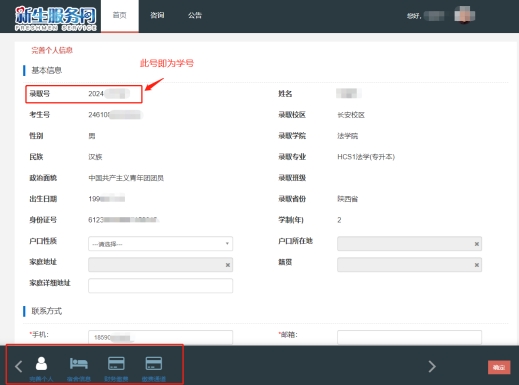温馨提示:在“完善个人信息”环节,请各位同学牢记此学号(录取号),财务缴费环节需输入此号码!