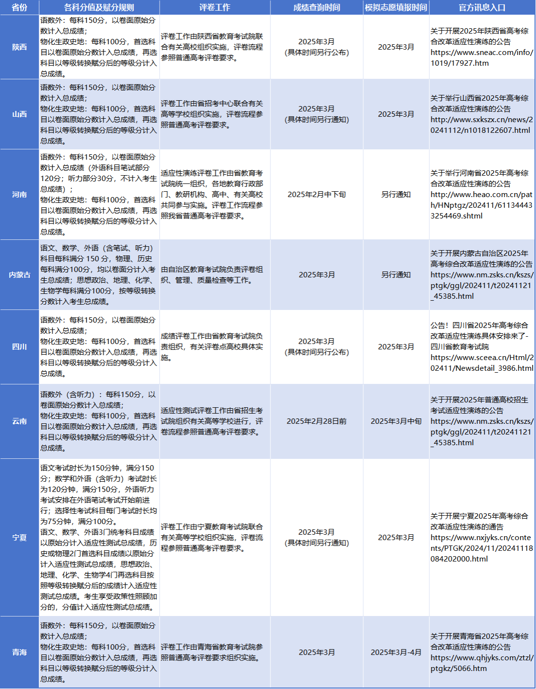 *各省份成绩查询时间及模拟志愿填报时间等事项以本省考试院通知为准。