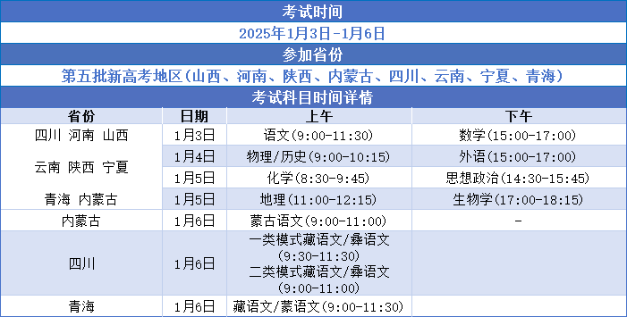 按照教育部统一部署,第五批新高考地区(山西、河南、陕西、内蒙古、四川、云南、宁夏、青海)将组织开展高考综合改革适应性演练,星空(中国)体育网招生信息网为大家整理了各省适应性演练考试具体安排,请考生及家长查收。