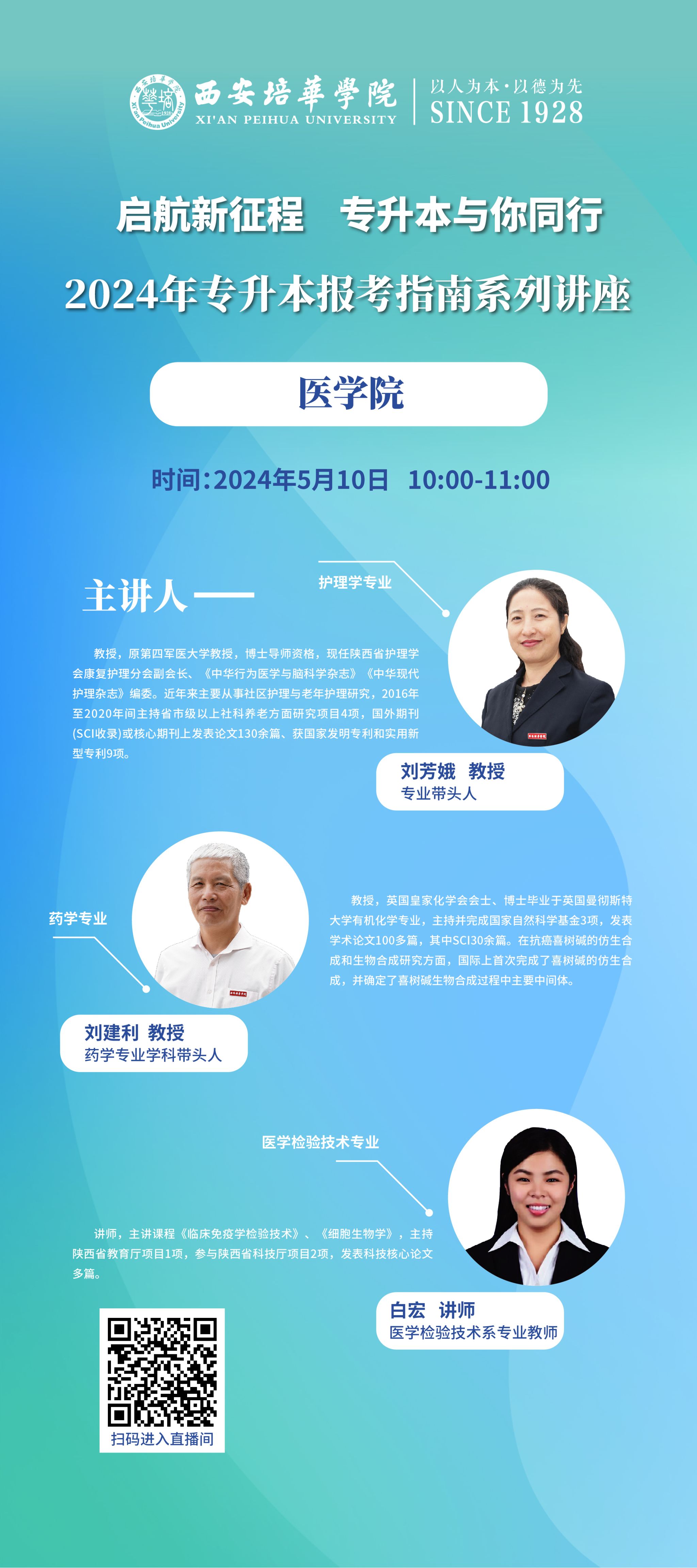 直播名师:刘芳娥 教授 专业带头人 / 刘建利 教授 药学专业学科带头人 / 白宏 讲师 医学检验技术系专业教师