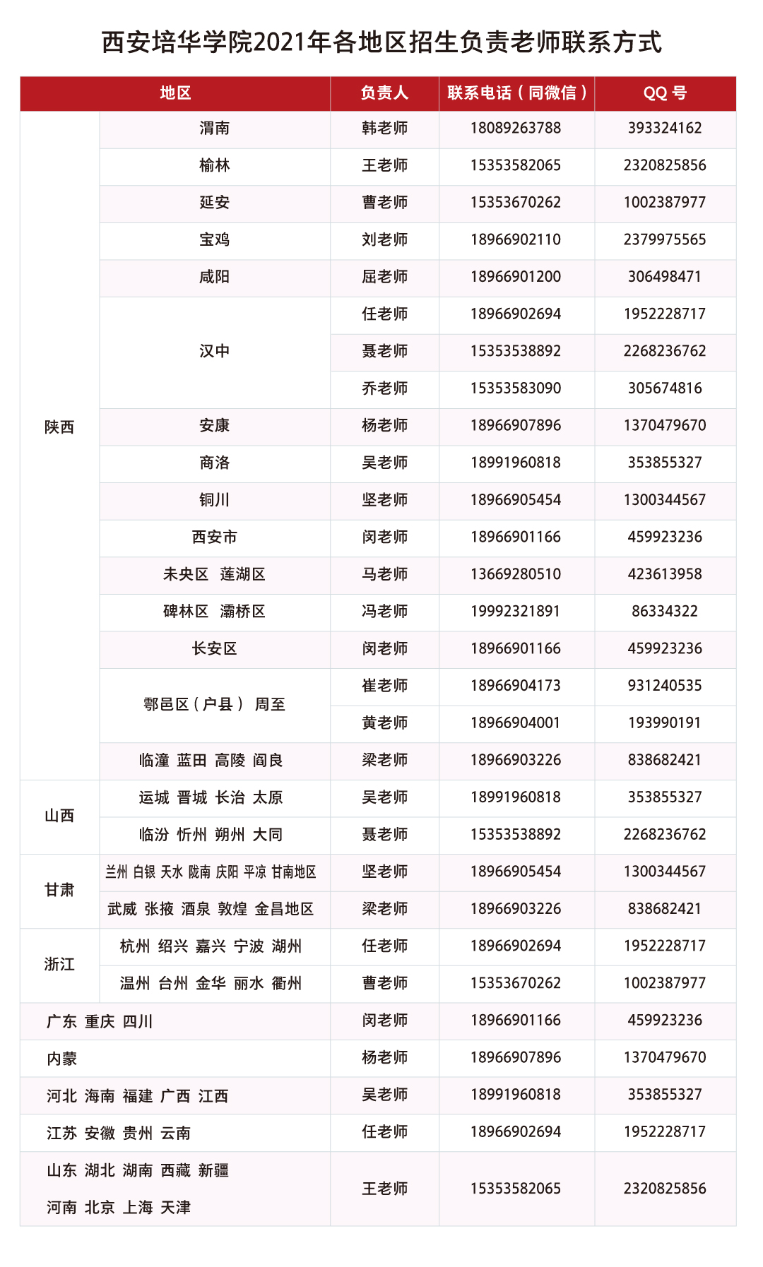星空·官方站网页版2021年各地区招生负责老师联系方式