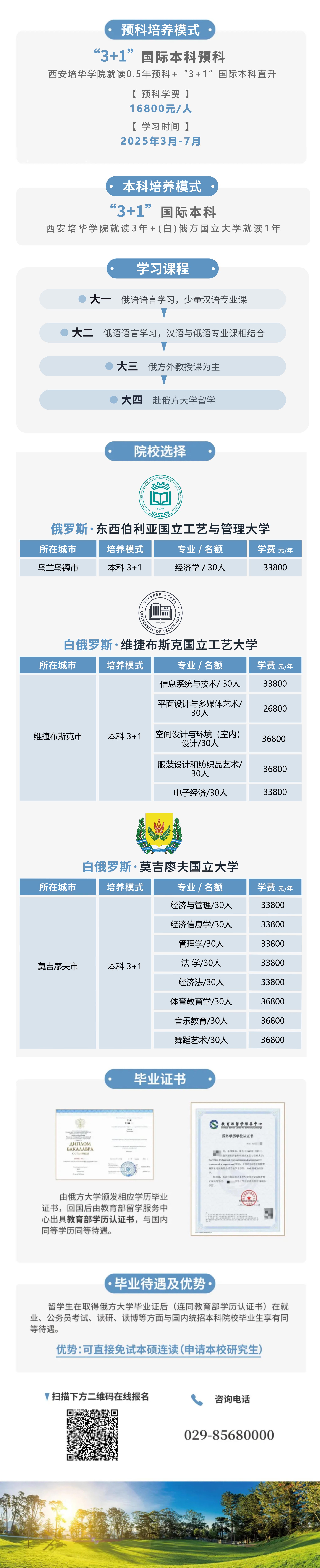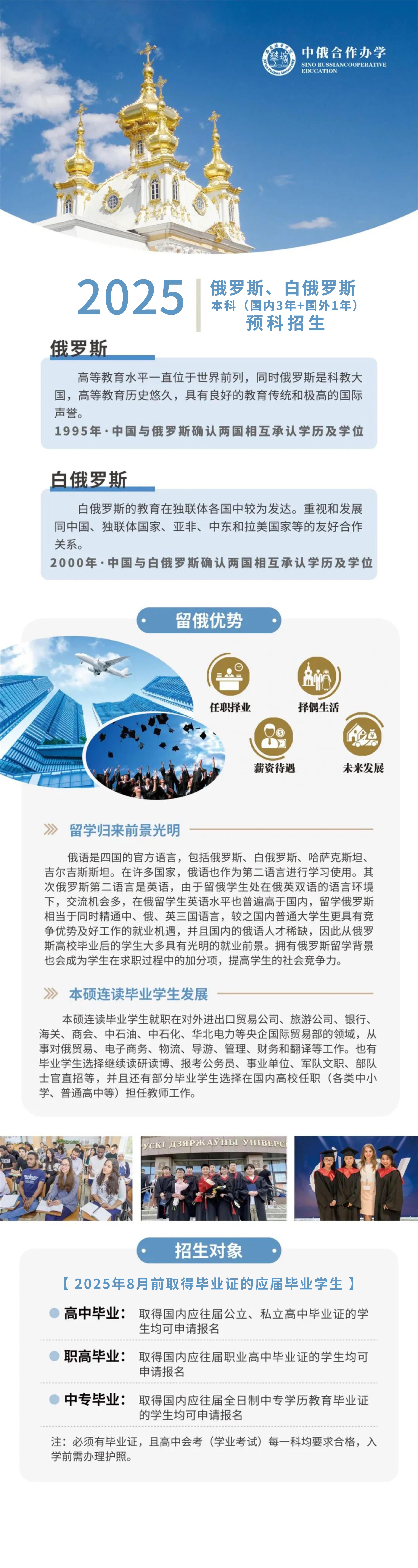 2025年俄罗斯、白俄罗斯“3+1”本科项目预科班招生简章